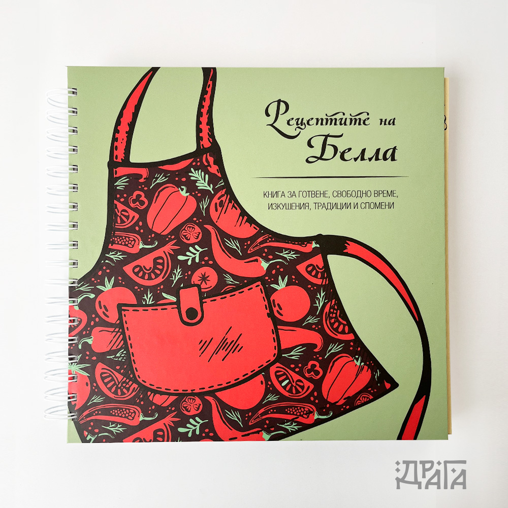 Тефтерът за рецепти с персонализация се изработва ръчно по оригинален дизайн, създаден от “Драга”.