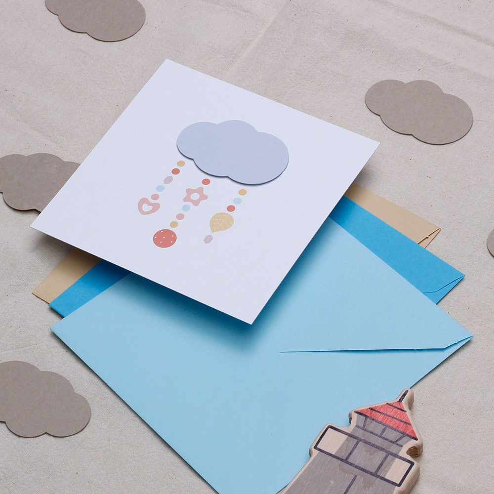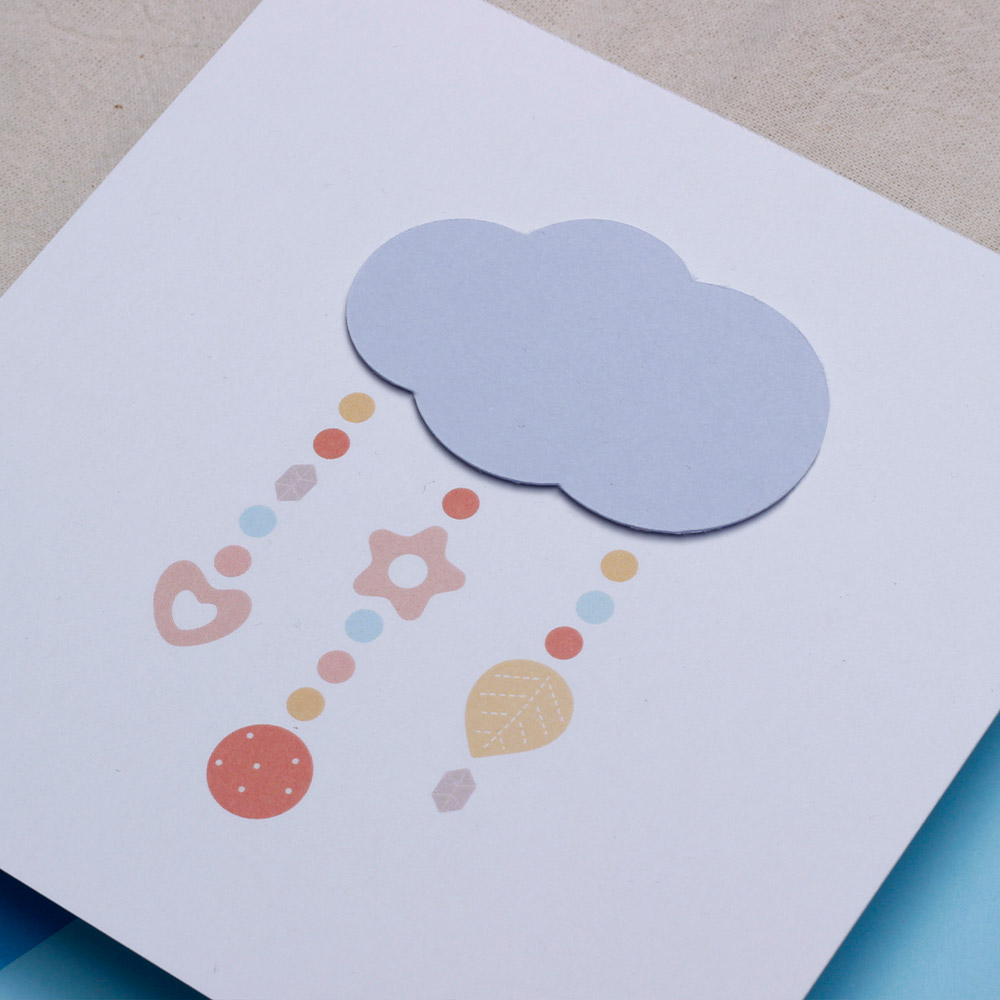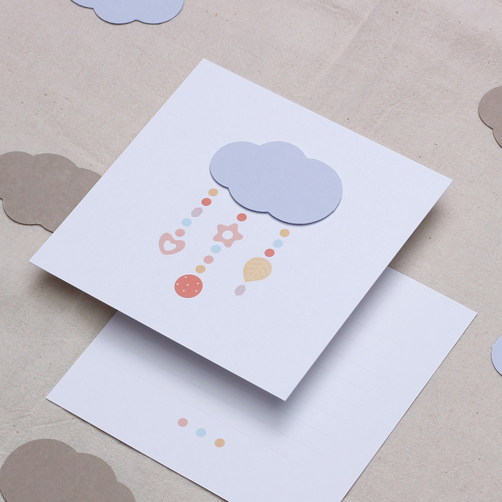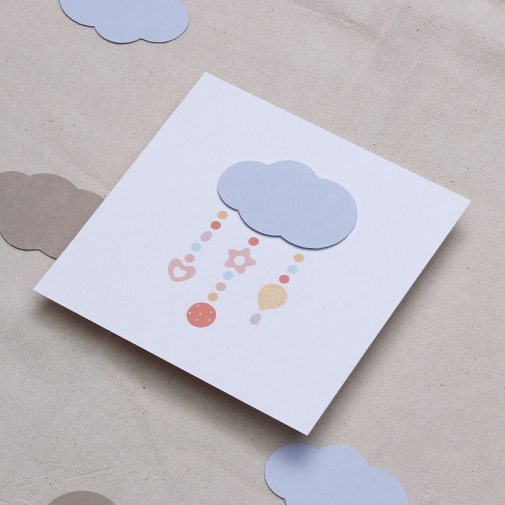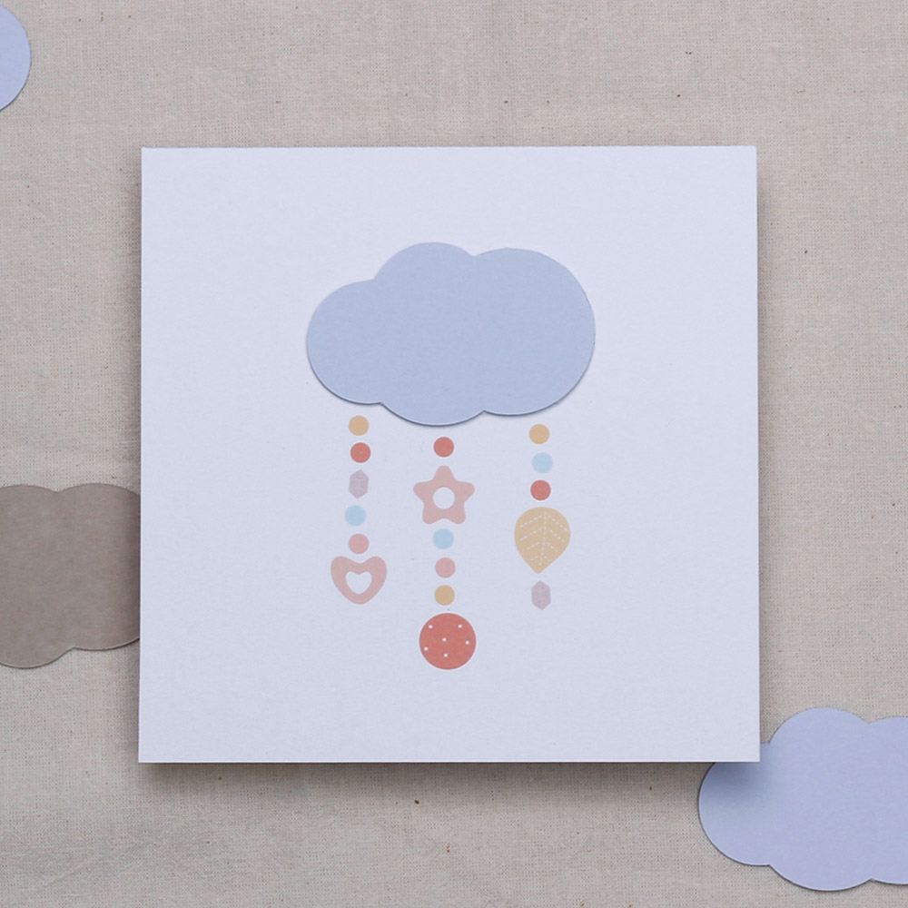 Дизайн, изпълнен с нежност Поканата се отличава с минималистичен, но изключително топъл дизайн. Акцентът е нежно розово облаче, от което се спускат деликатни символи – сърчице, звездичка и есенно листо, напомнящи за детска играчка тип „мобиле“. Пастелните цветове в прасковено, розово и горчица придават модерно, но и класическо усещане за уют.