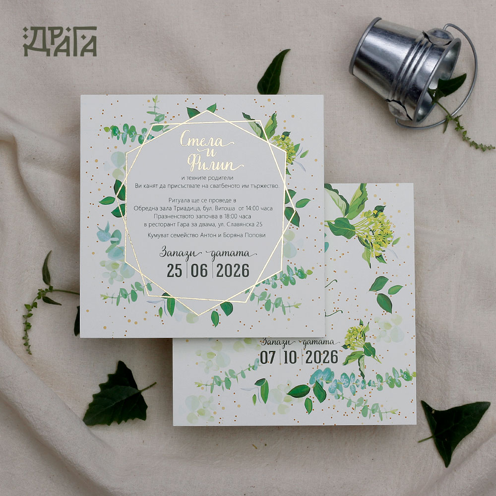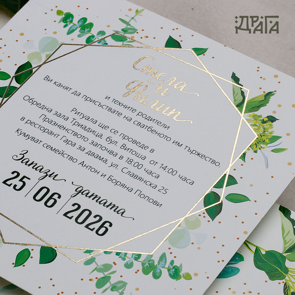 • Възможност за печат на лицето на поканата със златно или сребърно