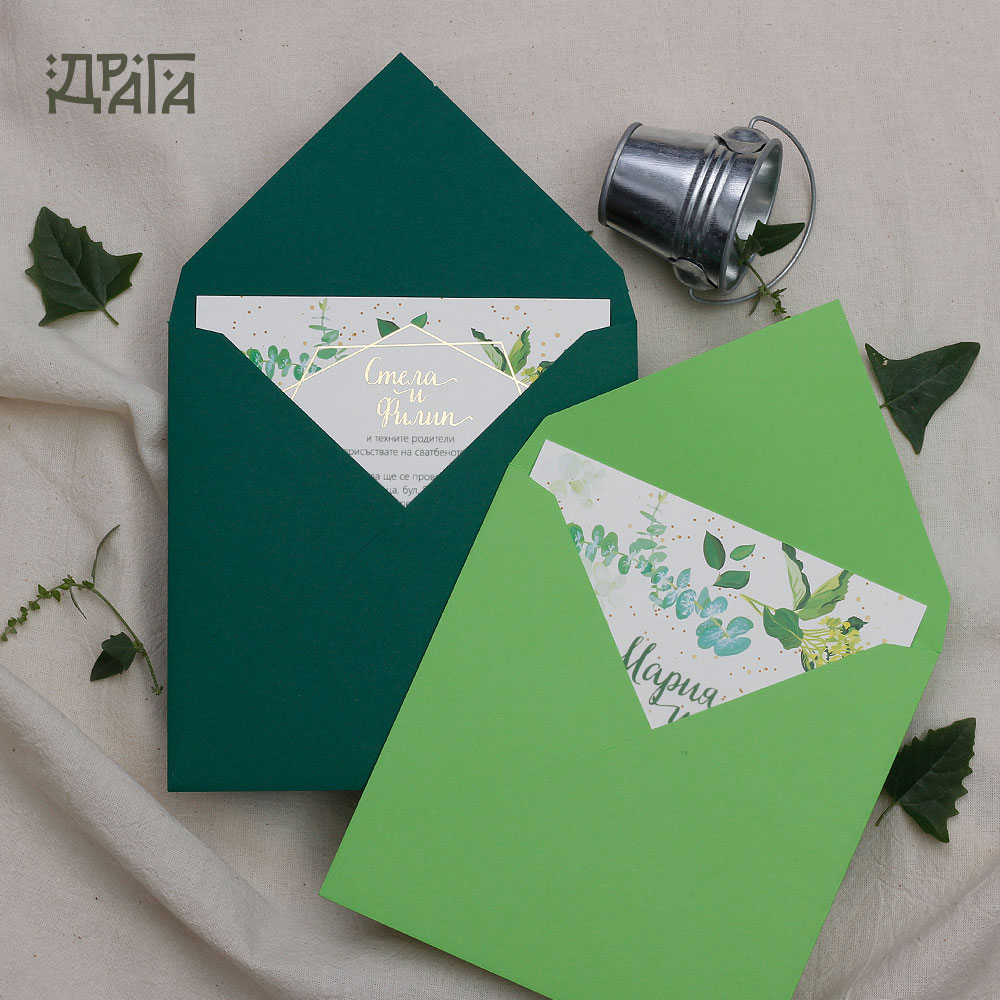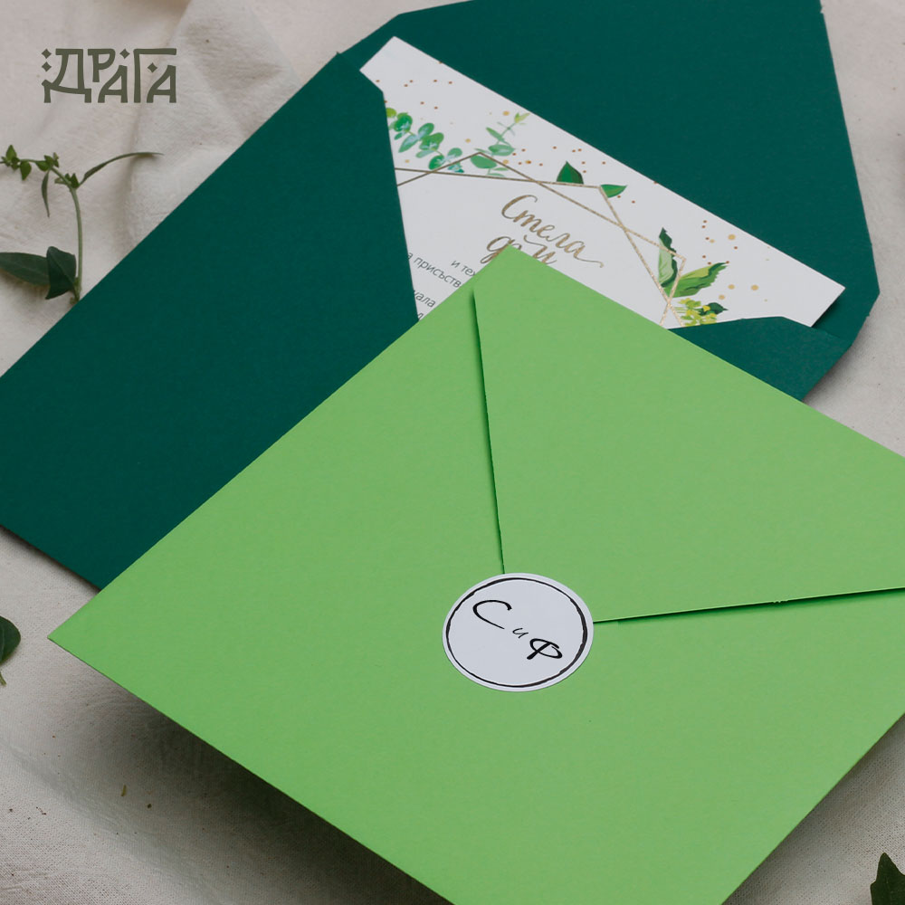 И понеже всеки детайл е важен, комбинирайте поканата със свежо зелен плик и стикер за него!