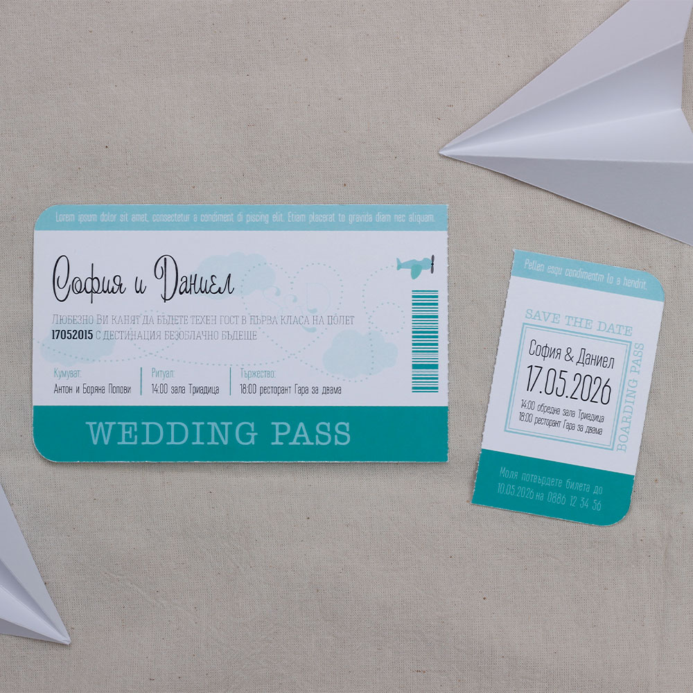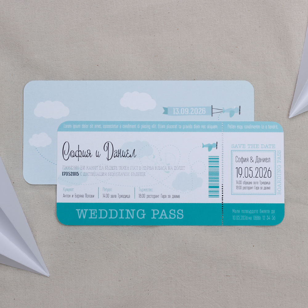 ОпцииСватбена покана Wedding Pass Blue